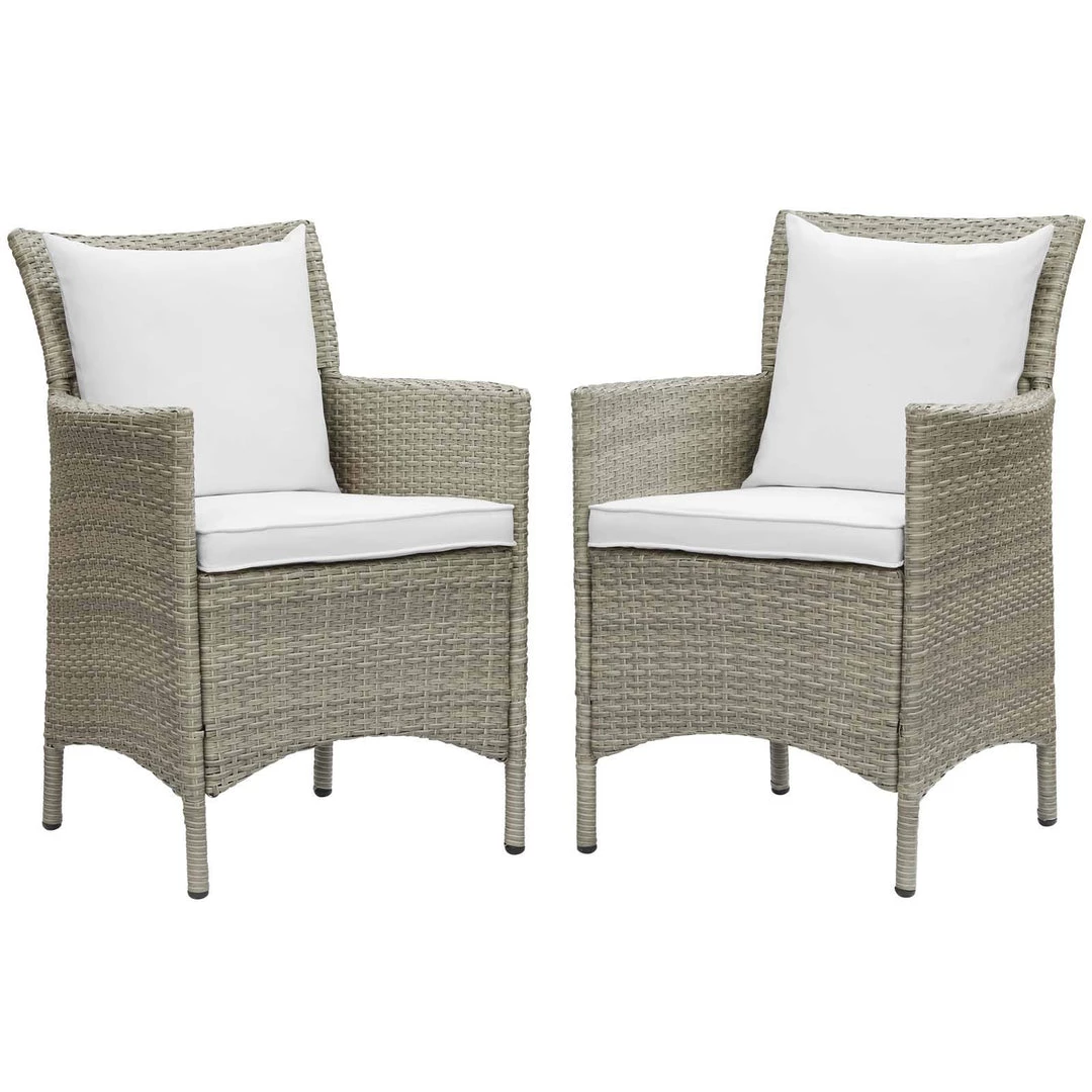 Conduit Outdoor Patio Wicker Rattan Dining Armchair Set of 2 Light Gray White
