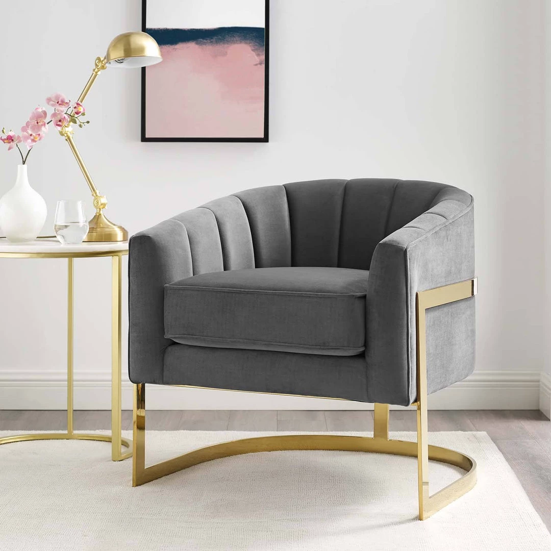 Esteem Vertical Channel Tufted Performance Velvet Accent Armchair Gray