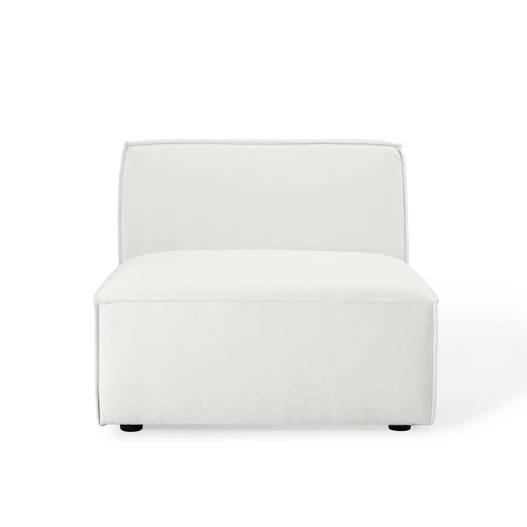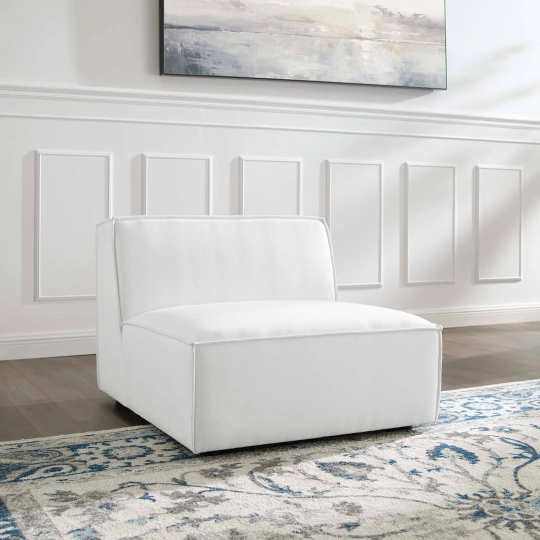 Create your custom living room and lounge area with the Restore Upholstered Fabric Sectional Sofa Armless Chair. The Restore Armless Chair appeals to minimalist elegance with a crisp design and broad lines accented with French piping details and polyester fabric upholstery. Dense foam padding and a pocket coil spring system in the cushions offer a luxe seating experience for your living room and lounge. The Restore Living Room Sofa Chair is solidly constructed from plywood and wood with non-marking foot caps to protect flooring and connectors between modular pieces. Chair Weight Capacity: 440 lbs.