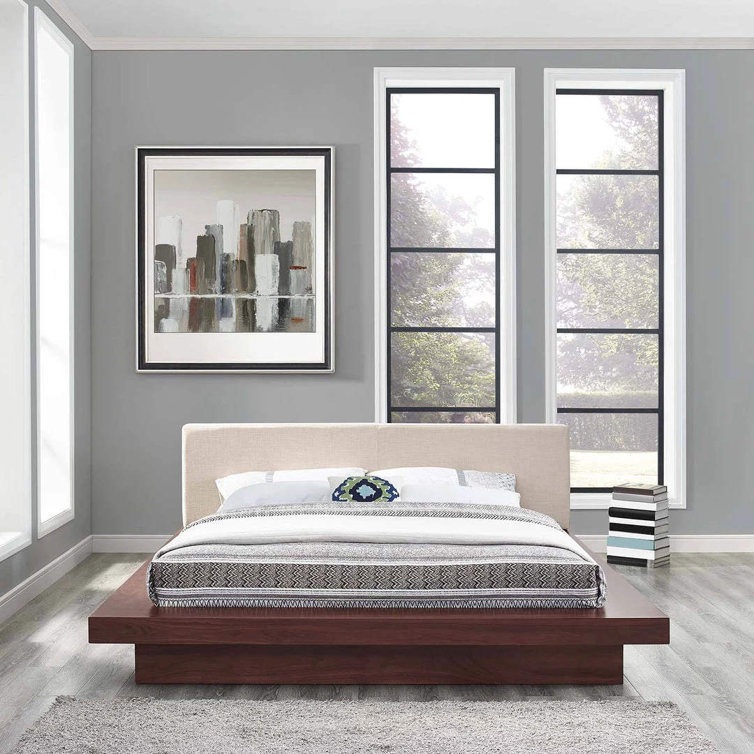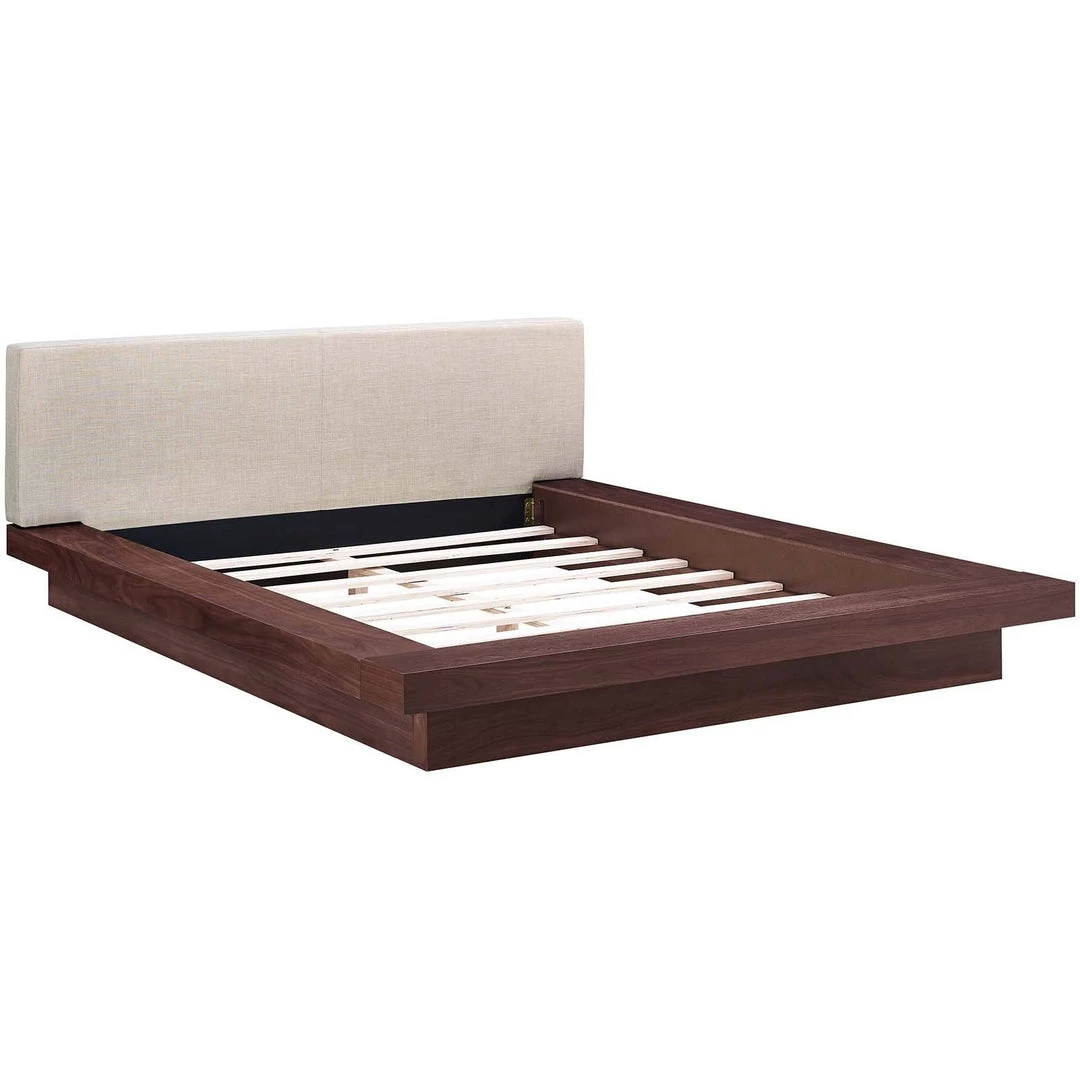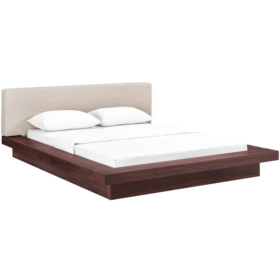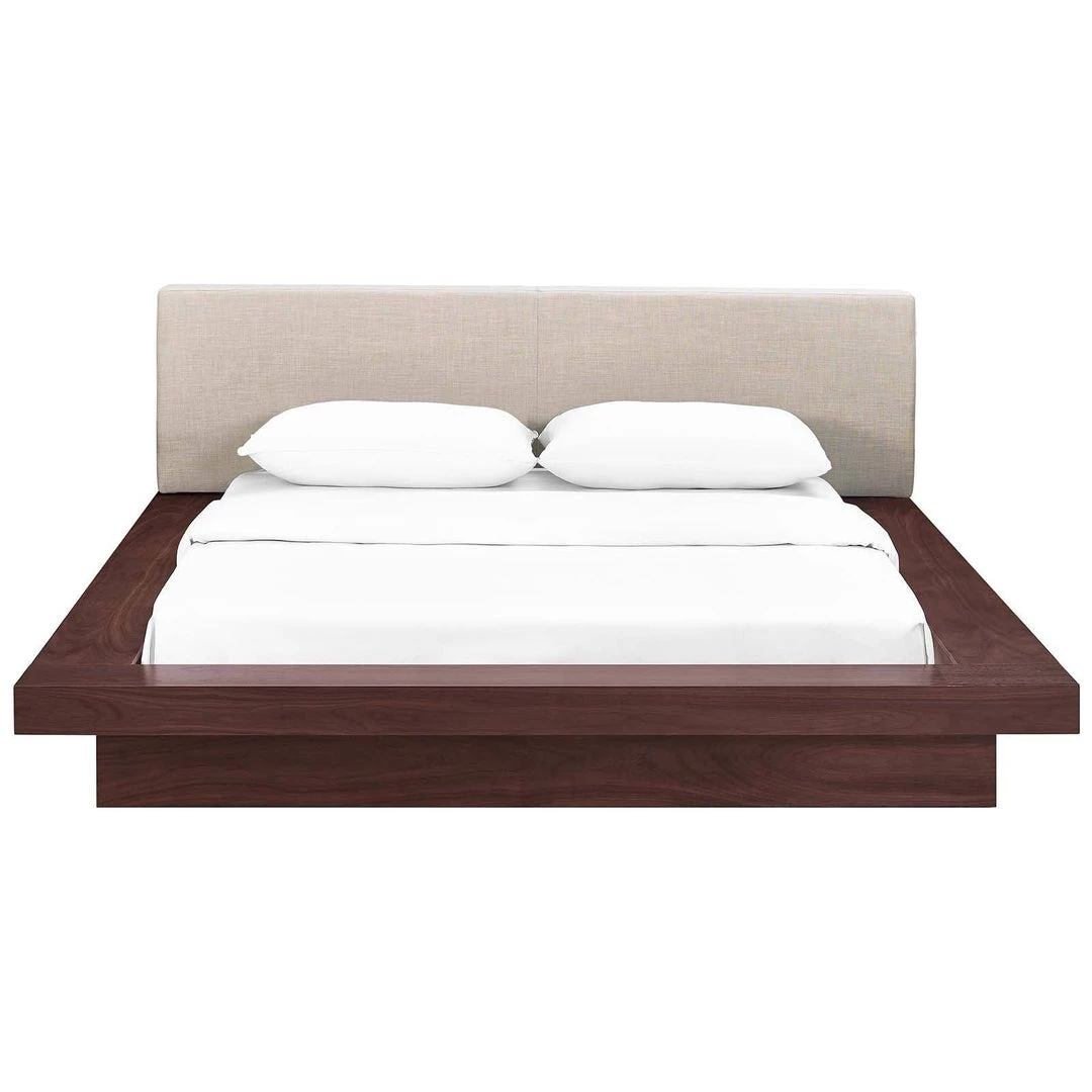Freja Queen Fabric Platform Bed Walnut Beige