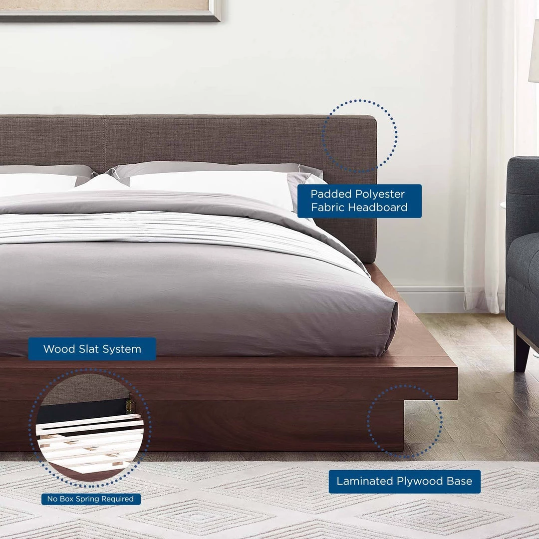 Freja Queen Fabric Platform Bed Walnut Brown