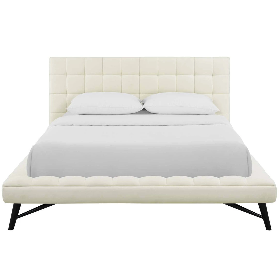 Julia Queen Biscuit Tufted Upholstered Fabric Platform Bed Ivory