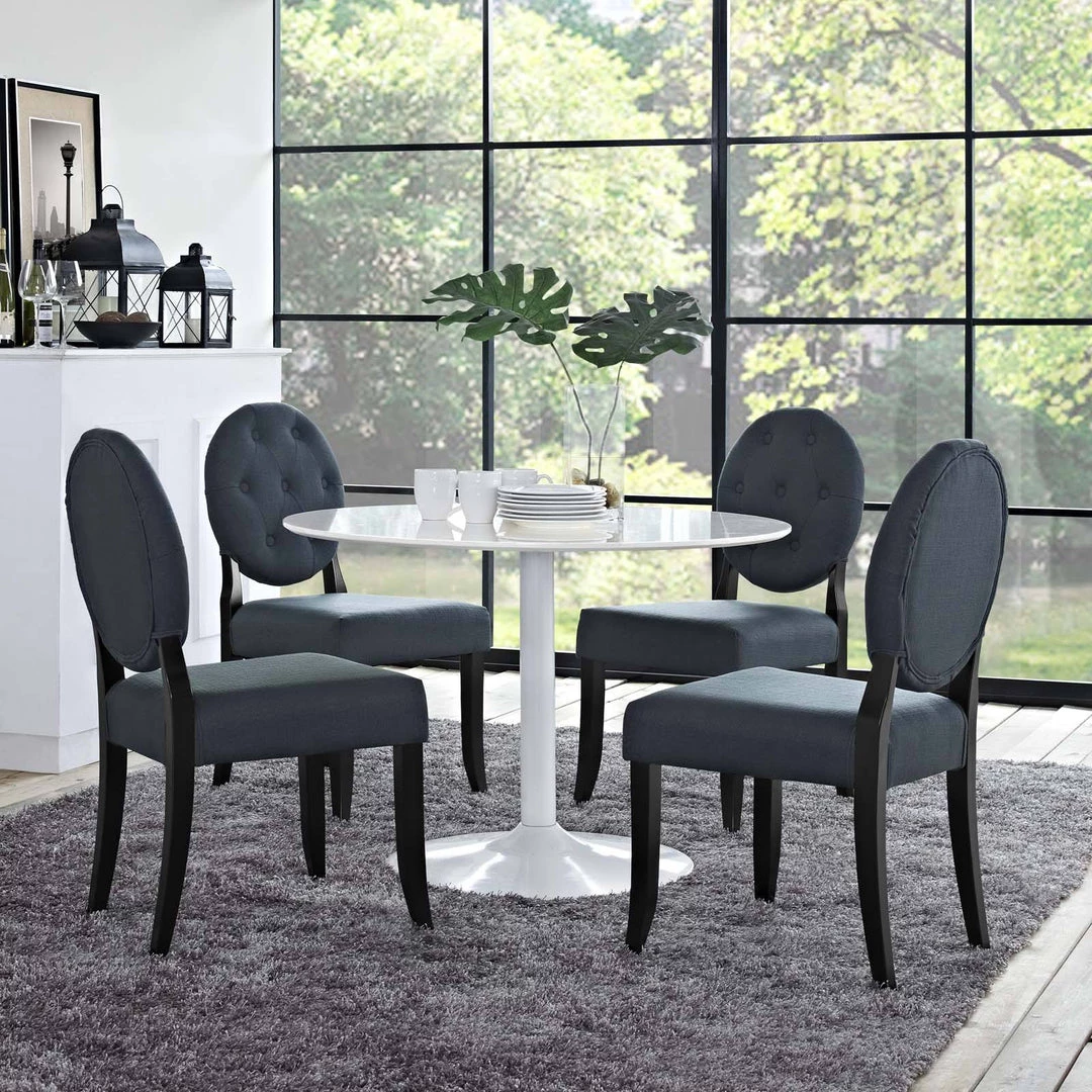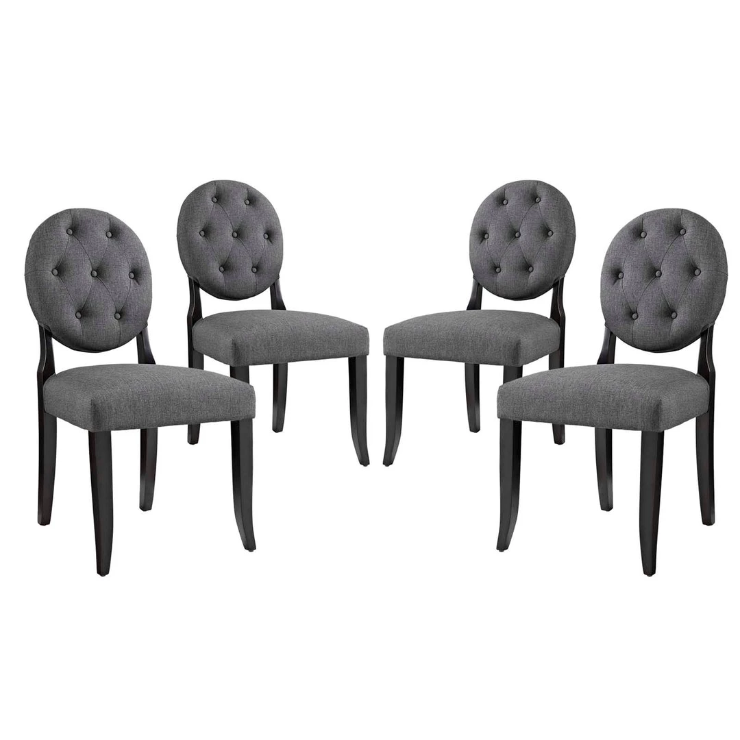 Button Dining Side Chair Upholstered Fabric Set of 4 Gray