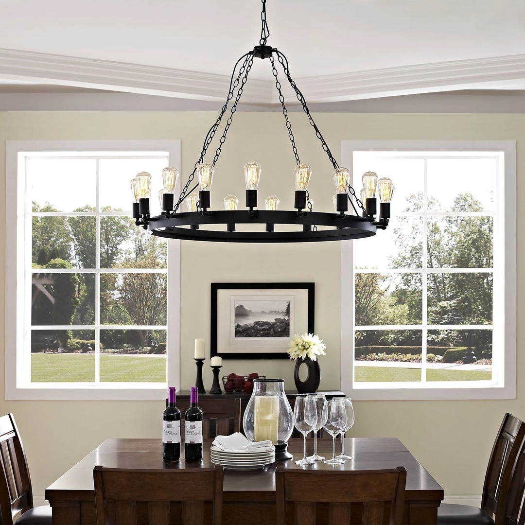 Transform your room into a launch pad of experience. The Teleport Chandelier Series is supported by four adjustable steel chains, adorned with a magnificent array of eighteen bulbs, and was designed to “touch down for landing” when desired with 180-degree up-down adjustable bulb holders. Transport your décor while dining amongst friends in this series perfect for industrial, ranch, vintage modern, contemporary, and other transitional décors.