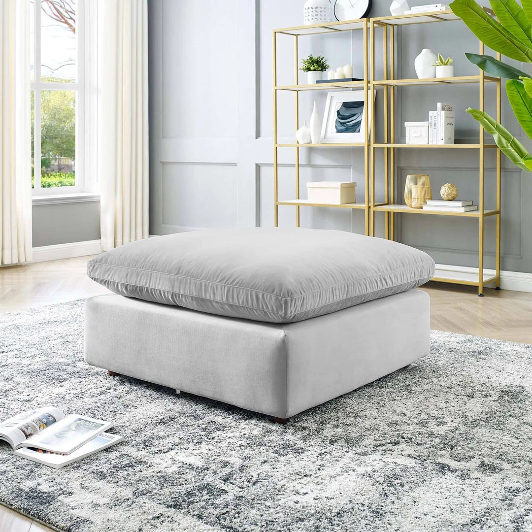 Commix Down Filled Overstuffed Performance Velvet Ottoman Light Gray
