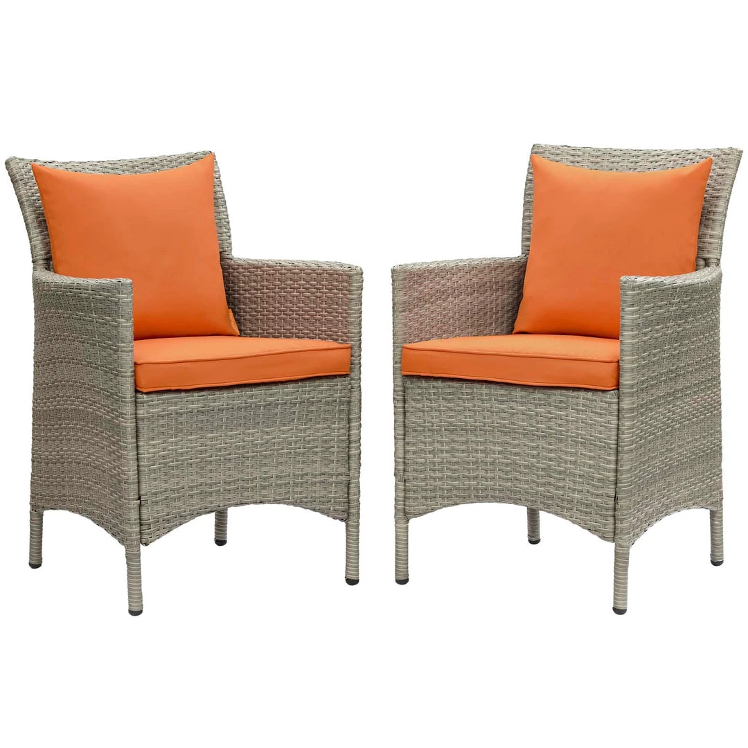 Conduit Outdoor Patio Wicker Rattan Dining Armchair Set of 2 Light Gray Orange