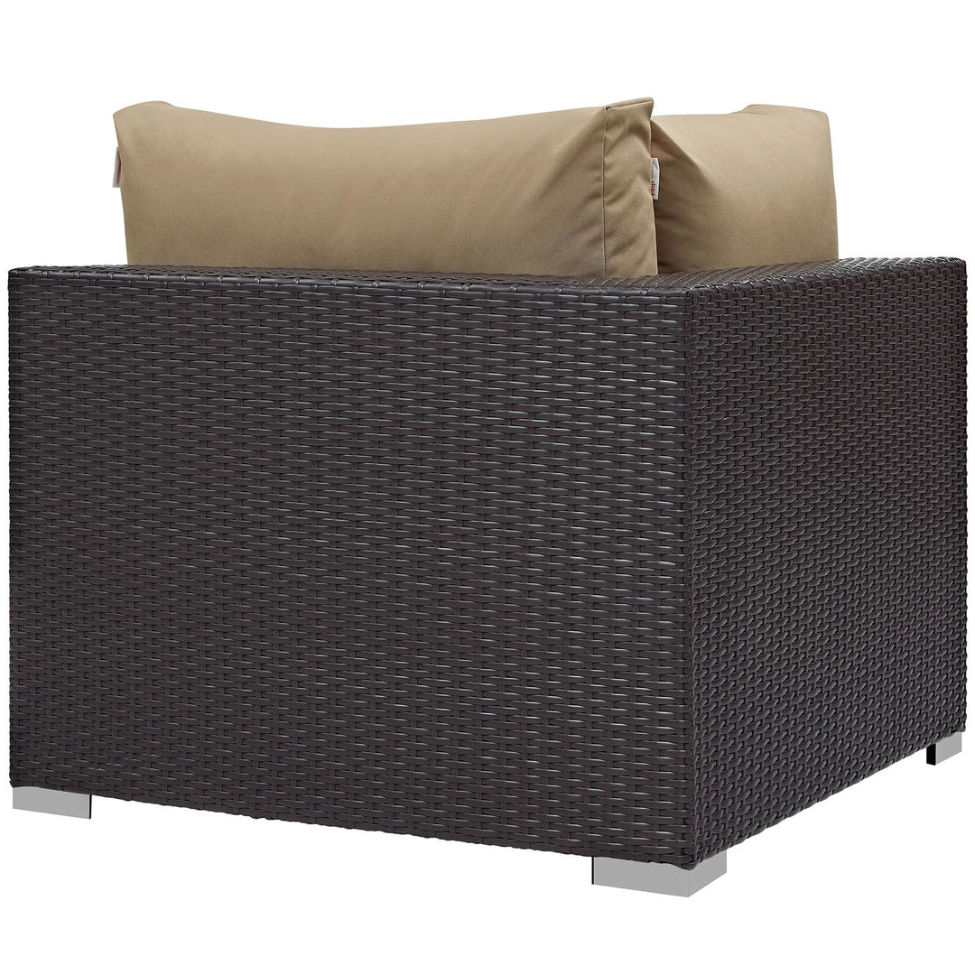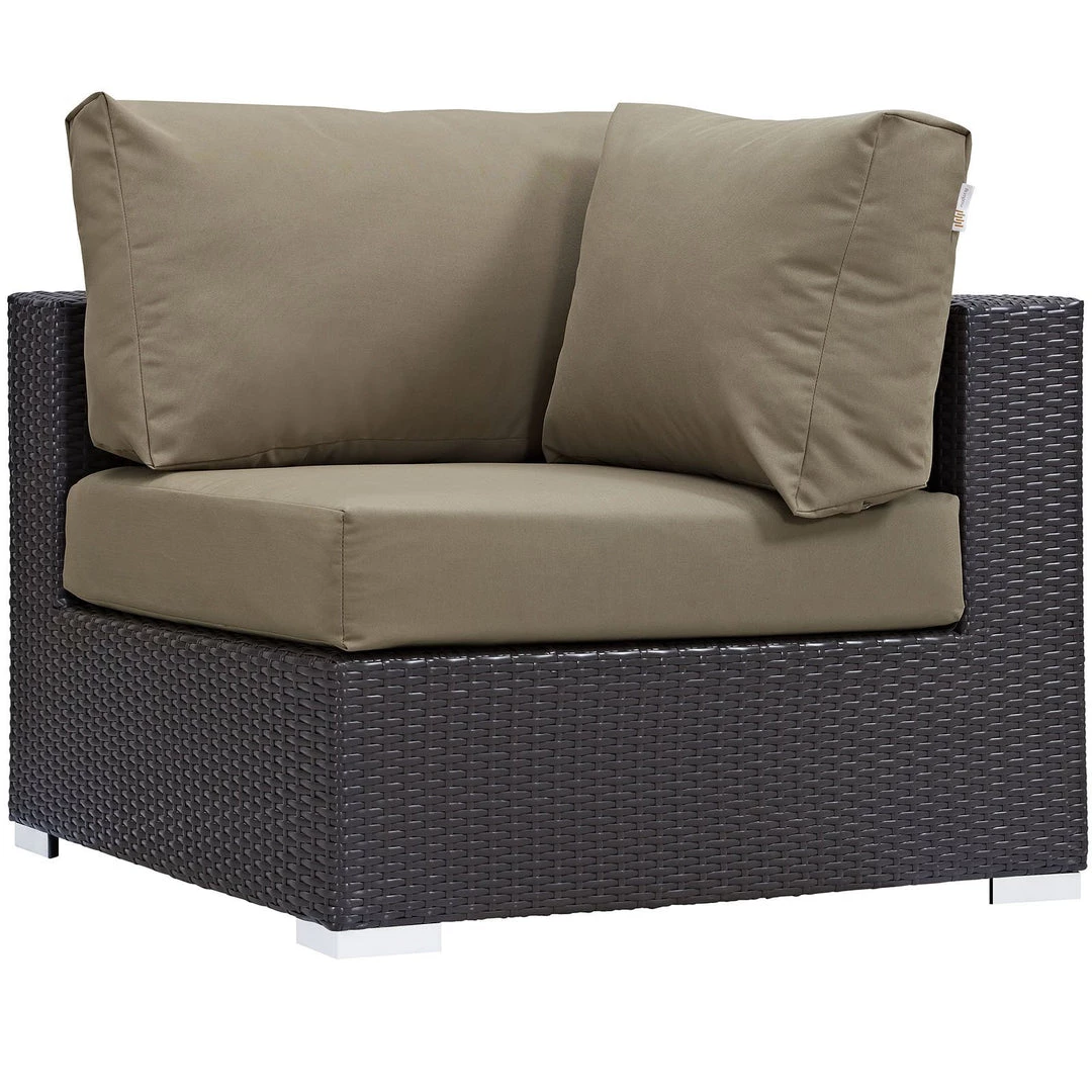 Gather stages of sensitivity with the Convene Outdoor Sectional series. Made with a synthetic rattan weave and a powder-coated aluminum frame, Convene is a versatile corner patio armchair from an outdoor collection that shifts and combines according to the spontaneous needs of the moment. Outfitted with all-weather fabric cushions, Convene Corner Deck Chair leaved a positive impression on friends and family while enhancing your patio, backyard, or poolside repast in this series of palpable distinction. This installment of the series is an Outdoor Patio Corner.
