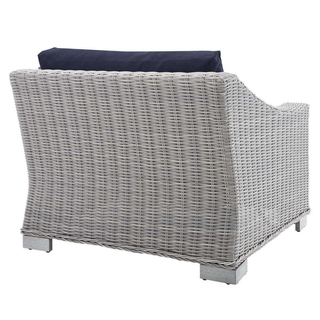 Conway Sunbrella® Outdoor Patio Wicker Rattan Left-Arm Chair Light Gray Navy