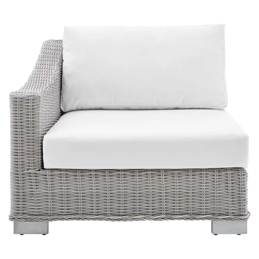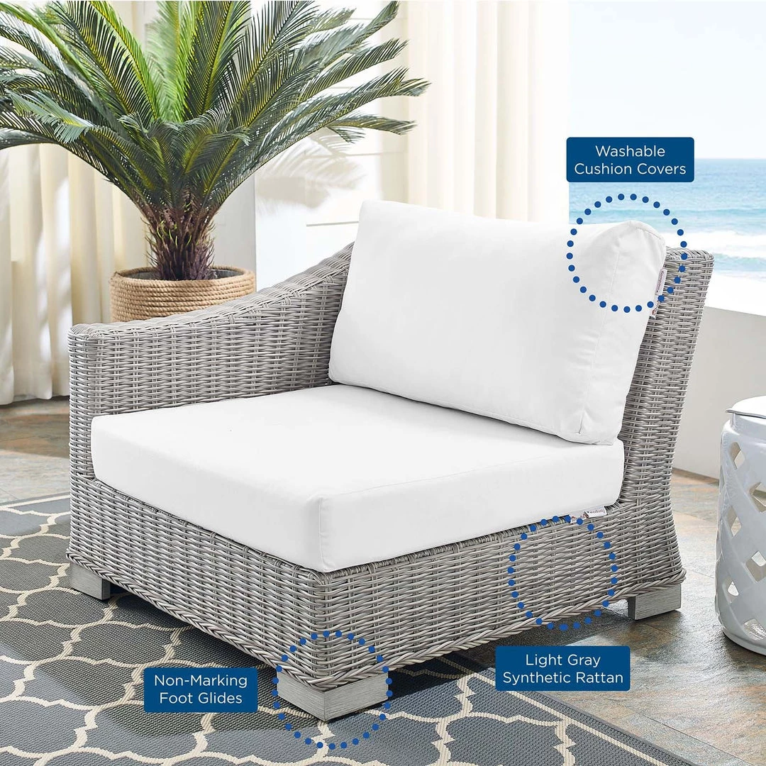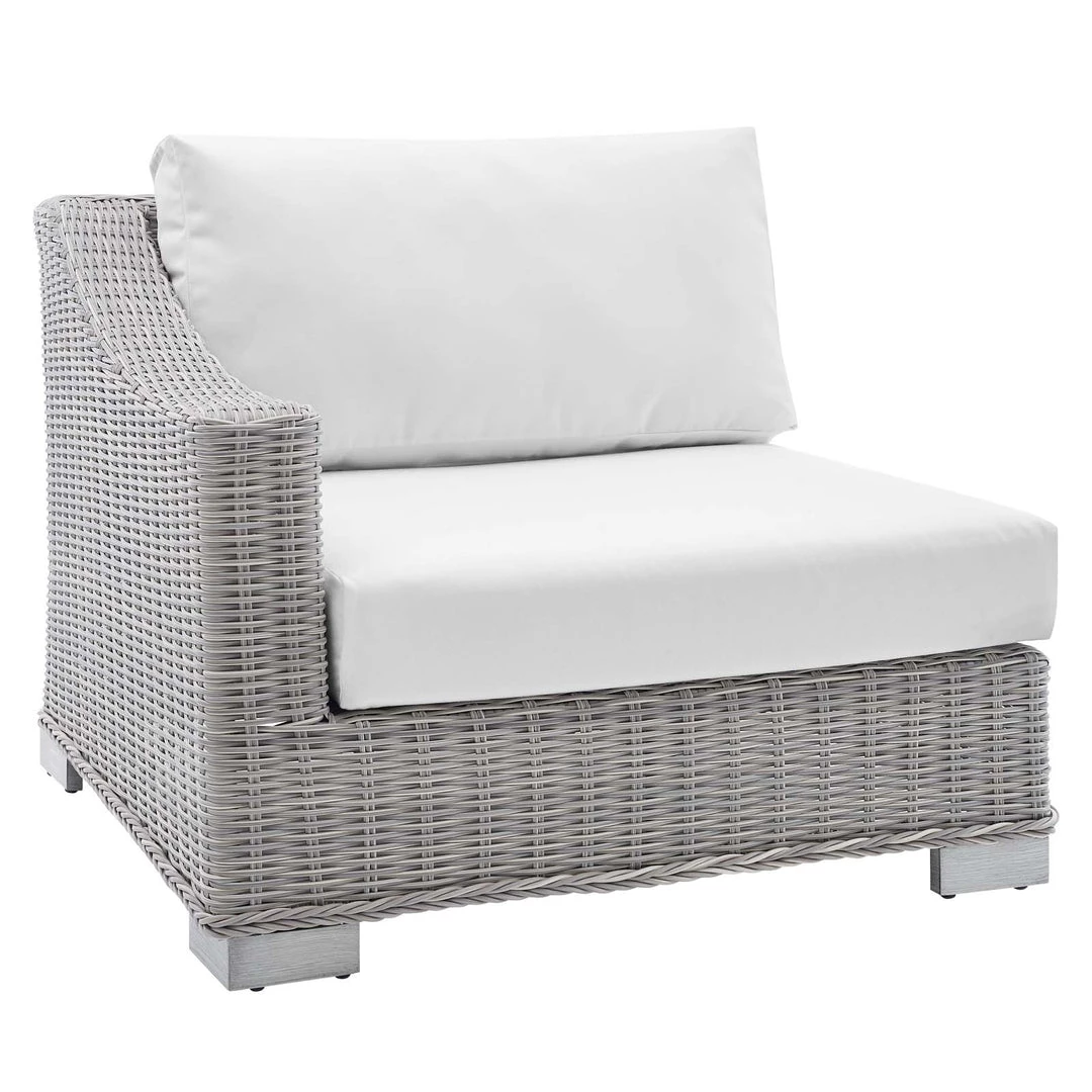Conway Sunbrella® Outdoor Patio Wicker Rattan Left-Arm Chair Light Gray White