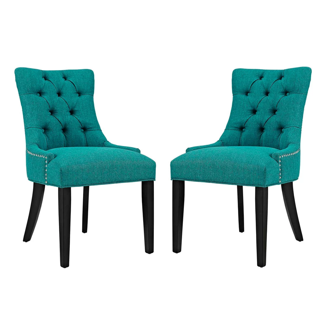Regent Dining Side Chair Fabric Set of 2 Teal