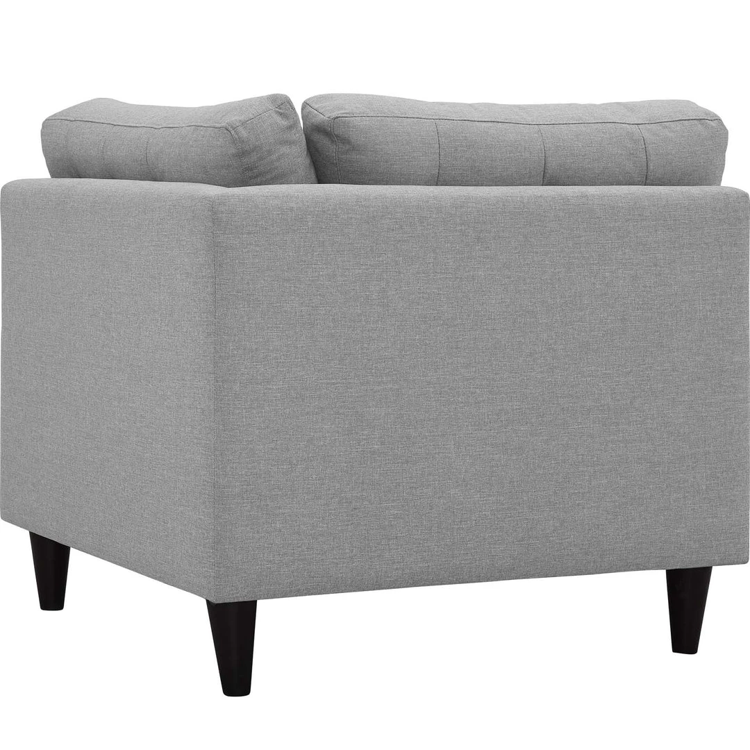 End the rule of unjust sovereignties that wage a useless war for your interiors. Empress leaves the would-be heiress of holistic furnishings in the dust with a design that rivals any competitor. Empress is heralded with deeply tufted buttons, plush cushions, and armrests that convey that perfect air of nobility. The solid wood legs come with plastic glides to prevent floor scratching, and the fine fabric upholstery leaves the recipients feeling richly rewarded.