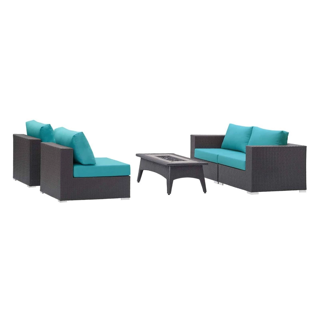 Convene 5 Piece Set Outdoor Patio with Fire Pit Espresso Turquoise