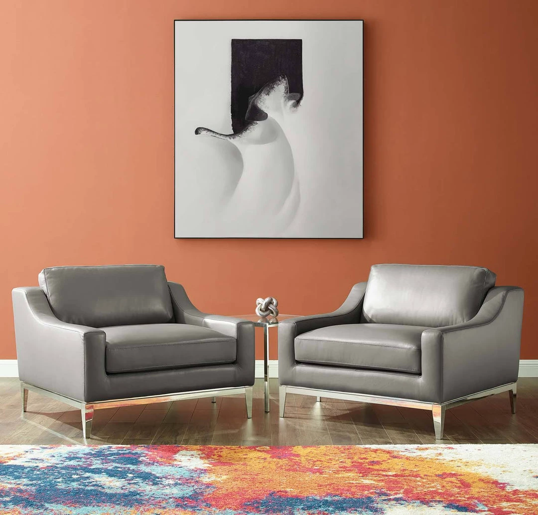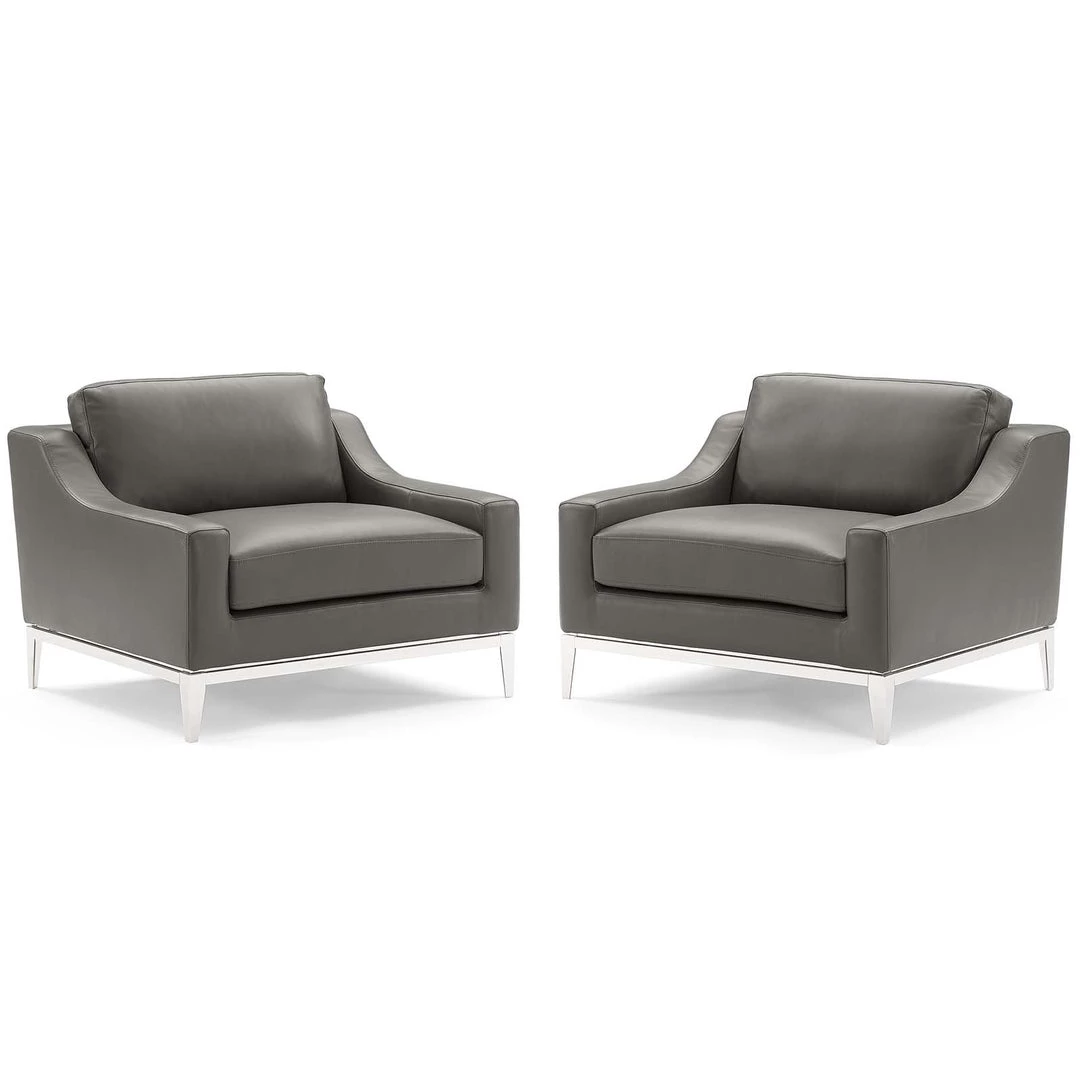 Harness Stainless Steel Base Leather Armchair Set of 2 Gray