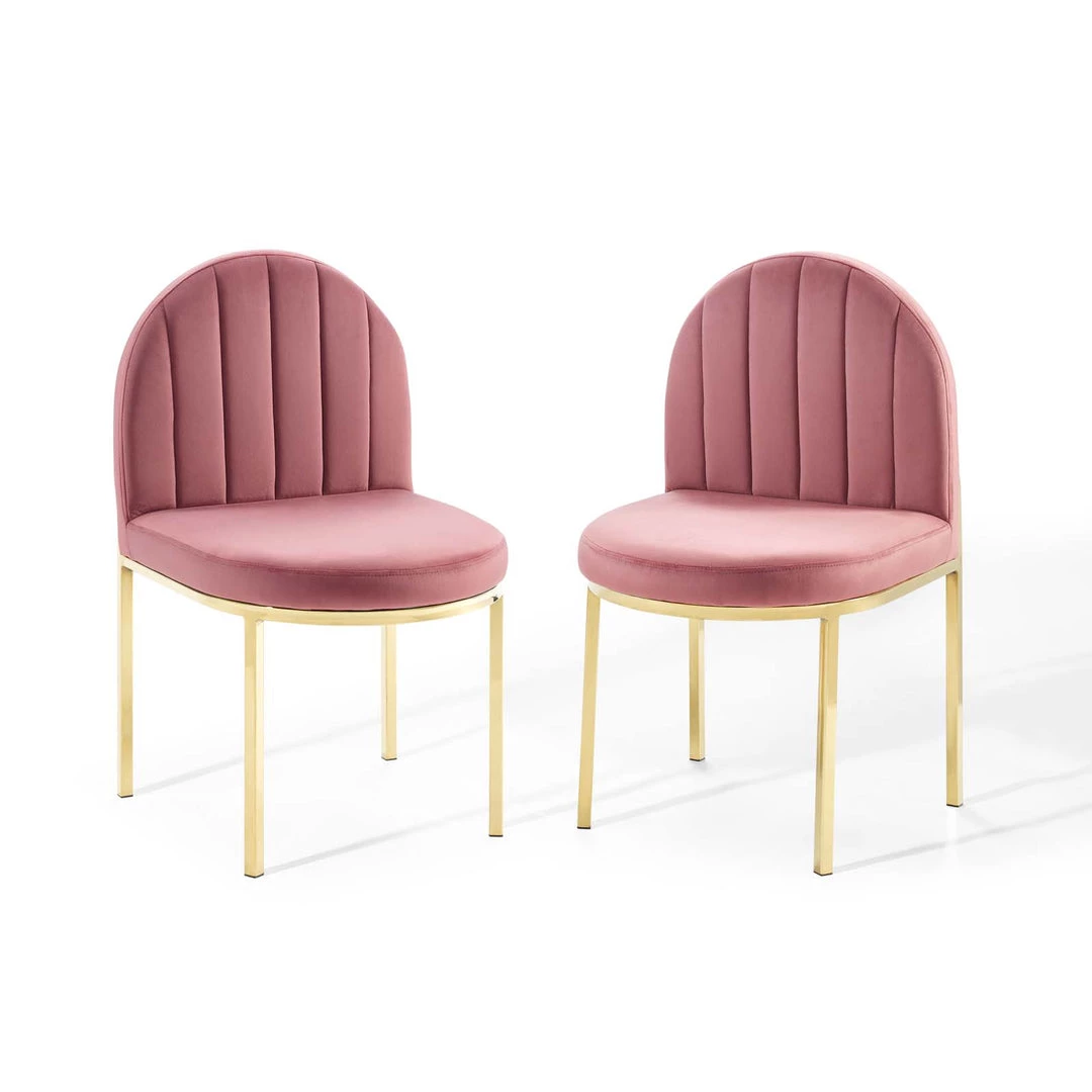 Isla Dining Side Chair Performance Velvet Set of 2 Gold Dusty Rose