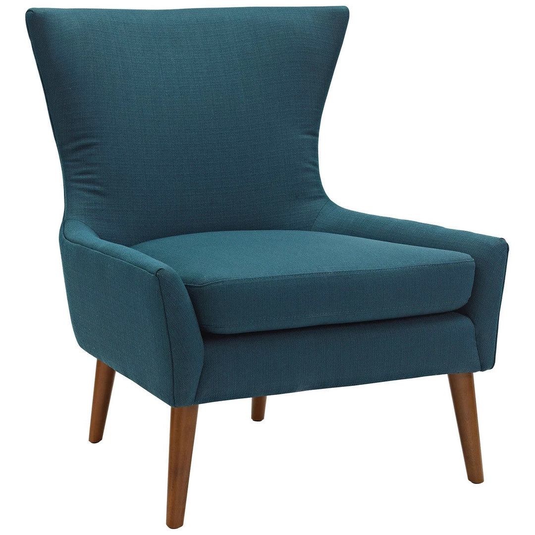 Soar aloft with the Keen Armchair. Organically crafted with an expansive wingtip design, comfortable plush seat cushion, and supportive seat back, Soar reimagines mid-century décor for the modern home. Fashioned with clean lines and a sophisticated form, Keen features solid walnut stained wood legs, dense foam padding, and fine polyester fabric upholstery in this charming armchair perfect for living rooms, apartments, and meeting areas.