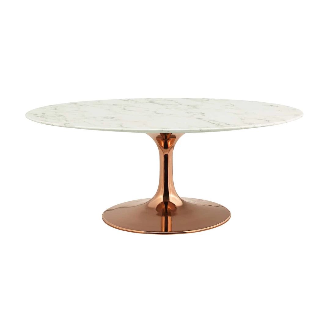 Lippa 42″ Oval-Shaped Marble Coffee Table Rose White