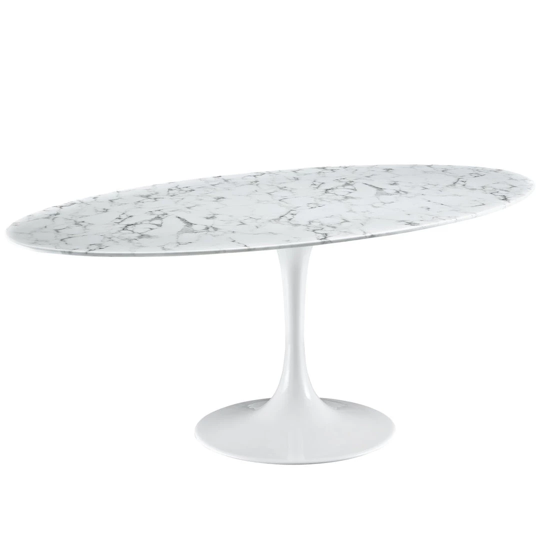 Lippa 78″ Oval Artificial Marble Dining Table White