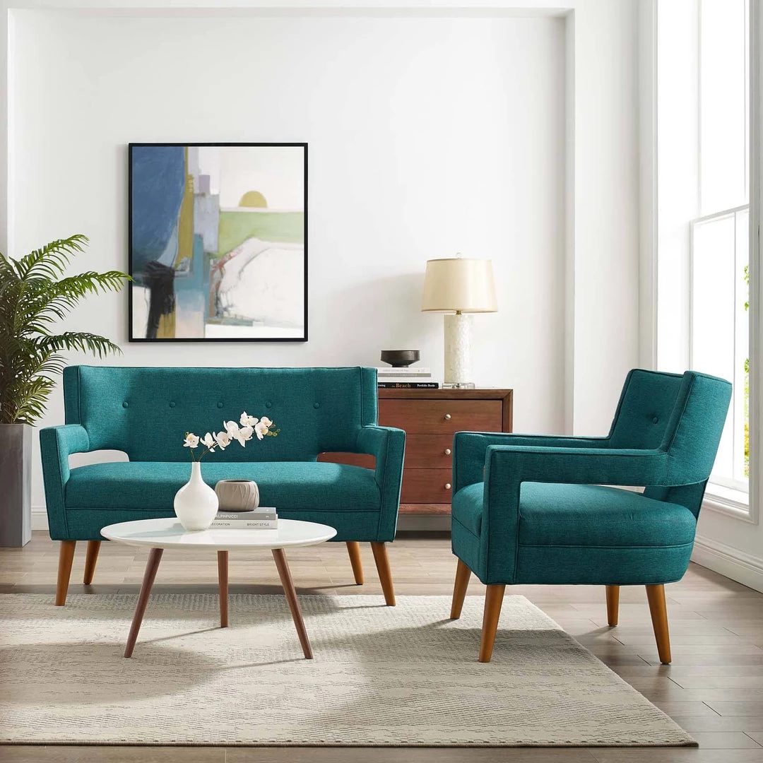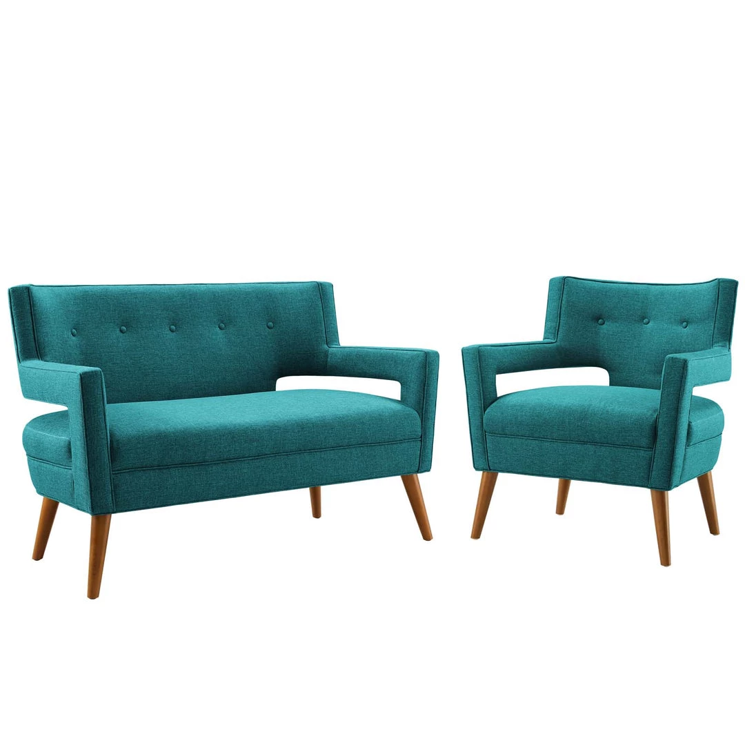 Sheer Upholstered Fabric Loveseat and Armchair Set Teal
