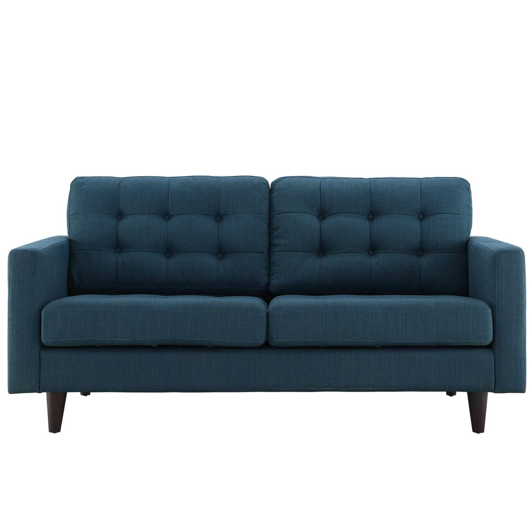 End the rule of unjust sovereignties that wage a useless war for your interiors. Empress leaves the would-be heiress of holistic furnishings in the dust with a design that rivals any competitor. Empress is heralded with deeply tufted buttons, plush cushions, and armrests that convey that perfect air of nobility. The solid wood legs come with plastic glides to prevent floor scratching, and the fine fabric upholstery leaves the recipients feeling richly rewarded.