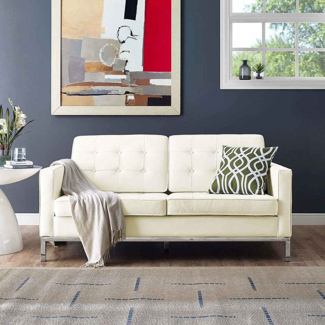 Loft Leather Loveseat Cream White