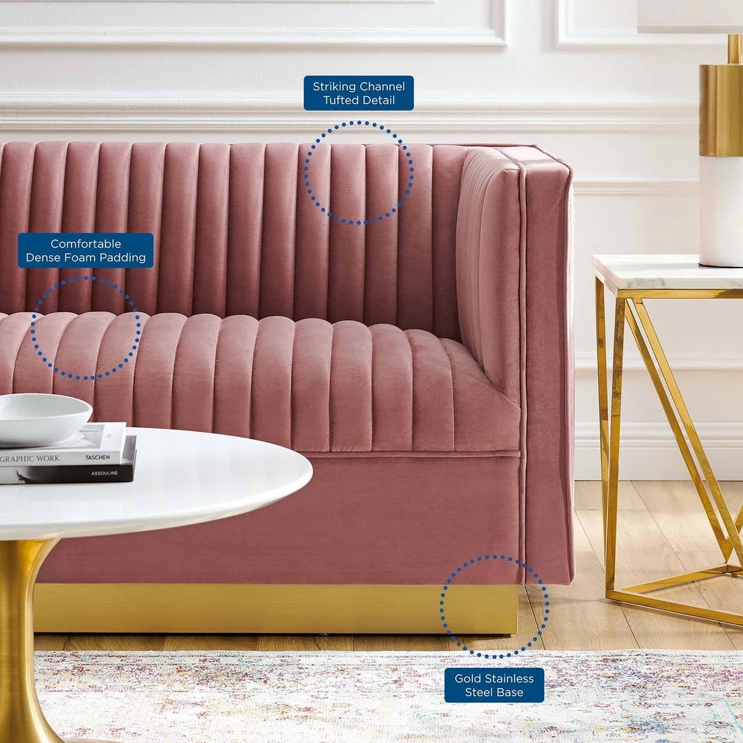 Sanguine Vertical Channel Tufted Performance Velvet Loveseat Dusty Rose