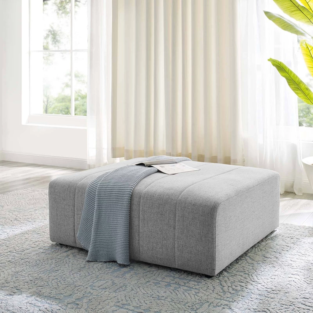 Indulge in comfort and relaxation by creating a custom living room and lounge area with the Bartlett Upholstered Fabric Ottoman. Featuring subtle channel tufting, rounded corners, and soft polyester fabric upholstery, this ottoman brings retro modern style and contemporary allure to your living space. Dense foam padding and a pocket coil spring system in the cushions offer a luxe seating experience with premium support and comfort. With a sturdy frame crafted from solid wood and plywood, this living room ottoman features modular connectors to keep each sectional sofa piece secure and non-marking foot caps to protect flooring. Ottoman Weight Capacity: 331 lbs.