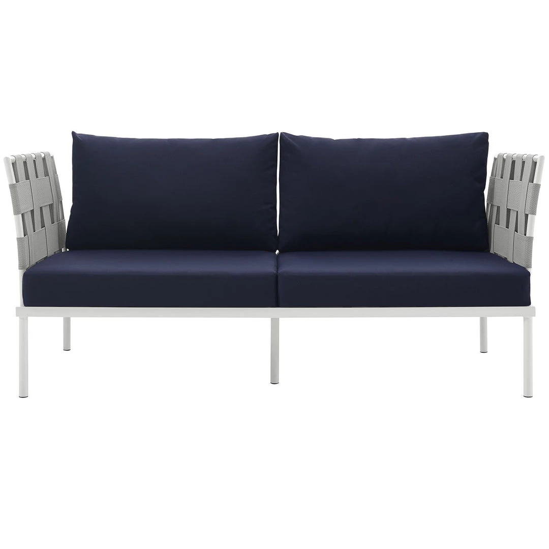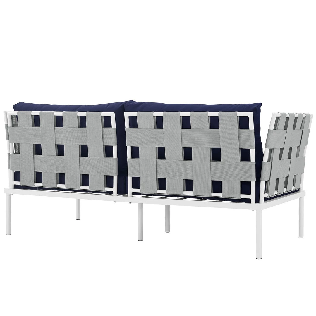 Harmony Outdoor Patio Aluminum Loveseat White Navy