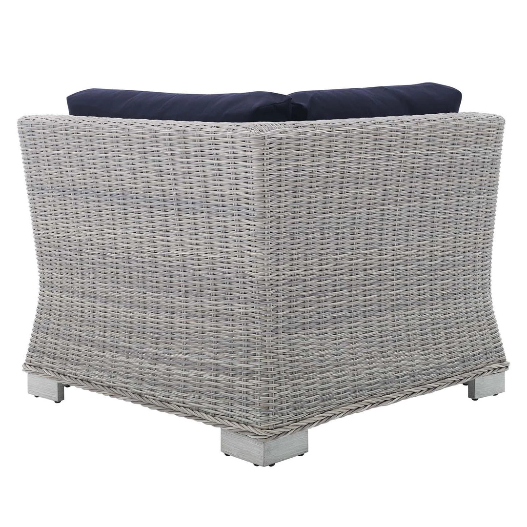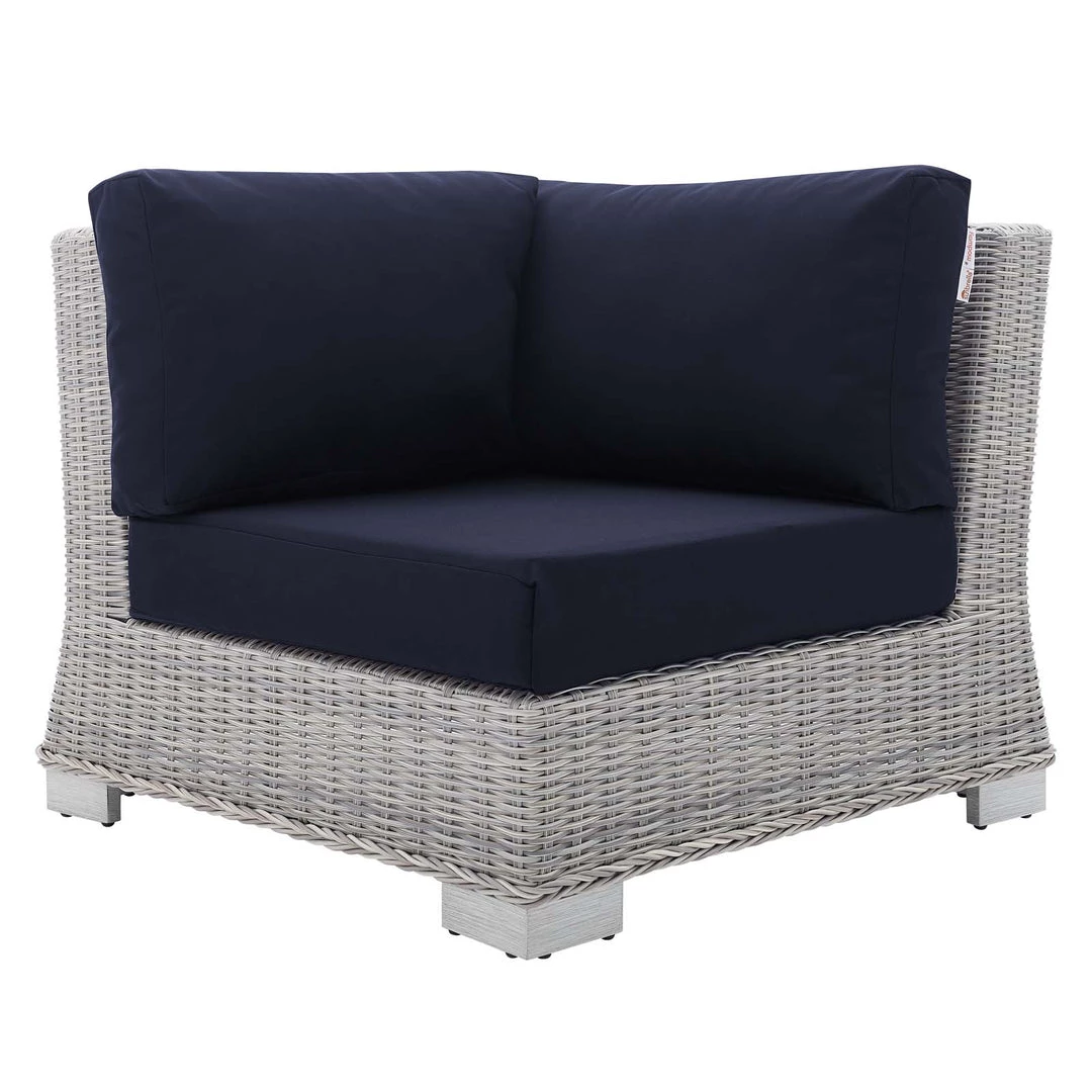 Conway Sunbrella® Outdoor Patio Wicker Rattan Corner Chair Light Gray Navy