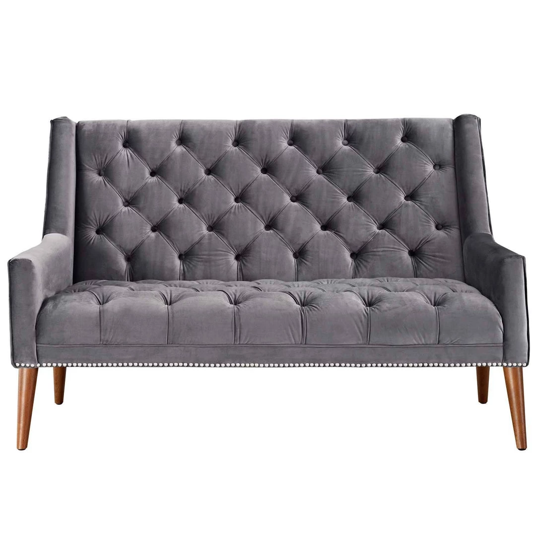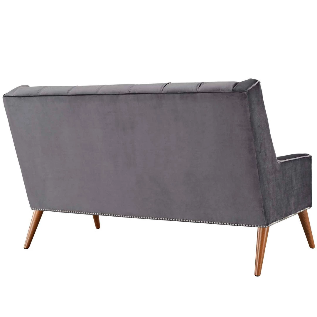 Invigorate your living room décor with the Peruse Arm Performance Velvet Loveseat. Luxuriously tufted buttons adorn the soft, stain-resistant performance velvet polyester upholstery for an exquisite look of exceptional appeal. Peruse comes densely padded in foam with solid wood legs featuring non-marking foot caps and an elegant antique nailhead detail. Peruse is a quality purchase perfect for the chic modern home or apartment.