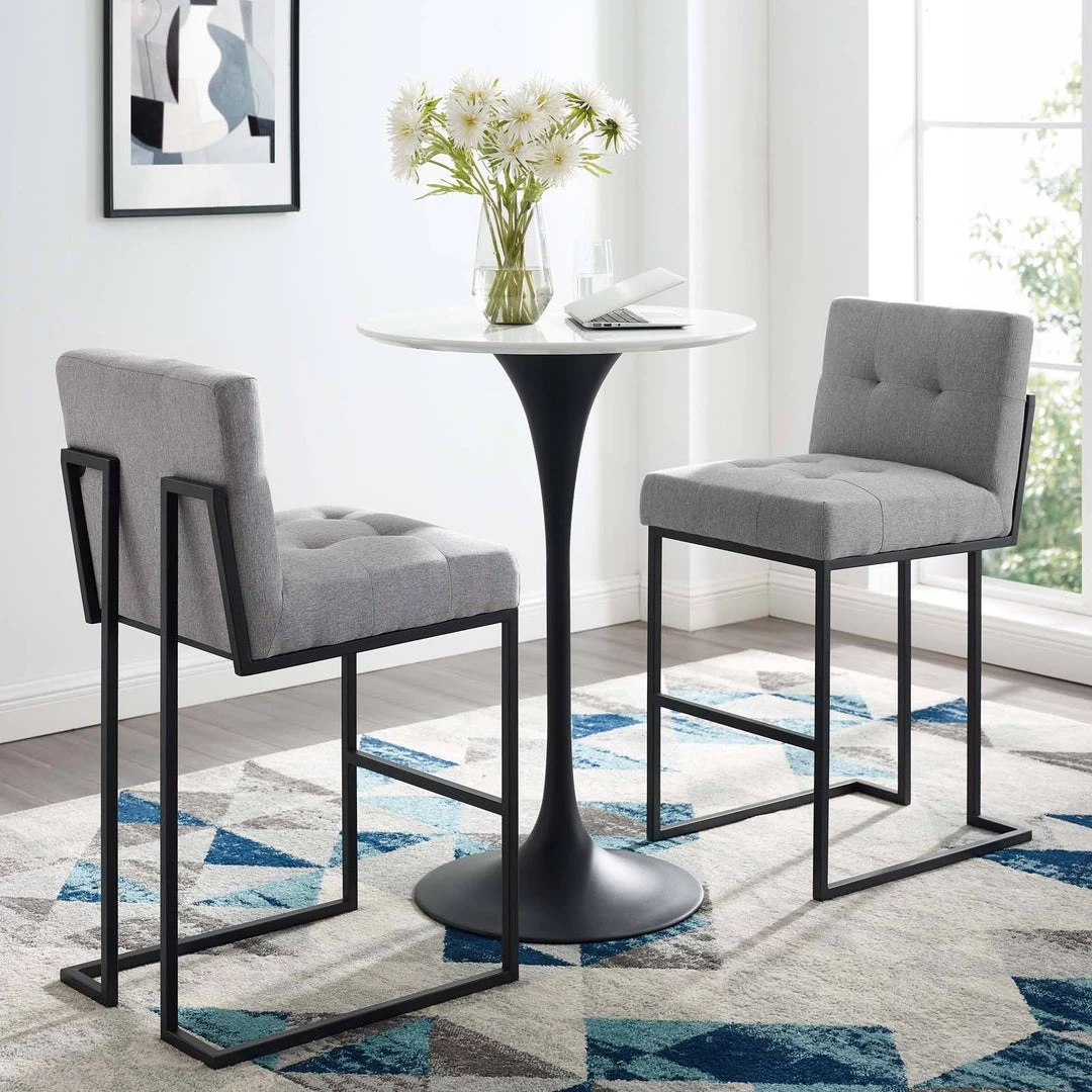 Maximize your dining room decor with Privy Bar Stool Set of 2. A glam deco bar stool, Privy features soft and durable fabric upholstery for a streamlined modern look. This stylish bar stool rests atop a sleek gold stainless steel geometric base with a footrest that will elevate your bar and dining experience. No assembly required. Bar Stool Weight Capacity: 331 lbs