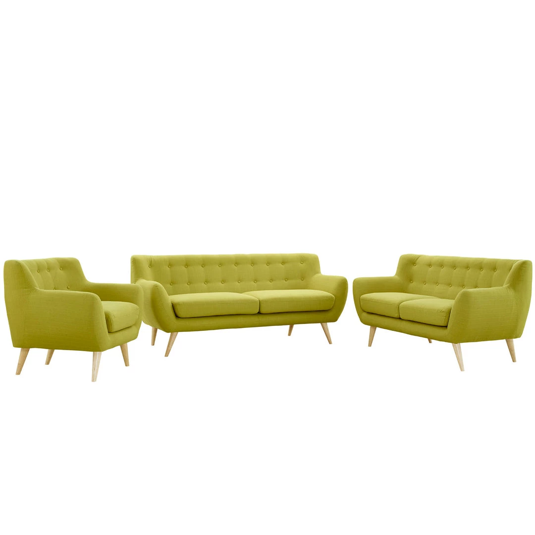Take notice and engage your sensibilities with this plush dual cushion, organically shaped Living Room Set. Remark is gracefully positioned on solid natural wood dowel legs designed according to mid-century sentiments. Whether settling in with coffee and brunch, or entering a spirited discussion with friends, Remark’s polyester upholstery, two rows of finely stitched back seat buttons, and organic form ensure an eye-catching appeal at every turn. Bring depth and modernity to your contemporary living room or lounge area with the Remark mid-century modern style Living Room Set.