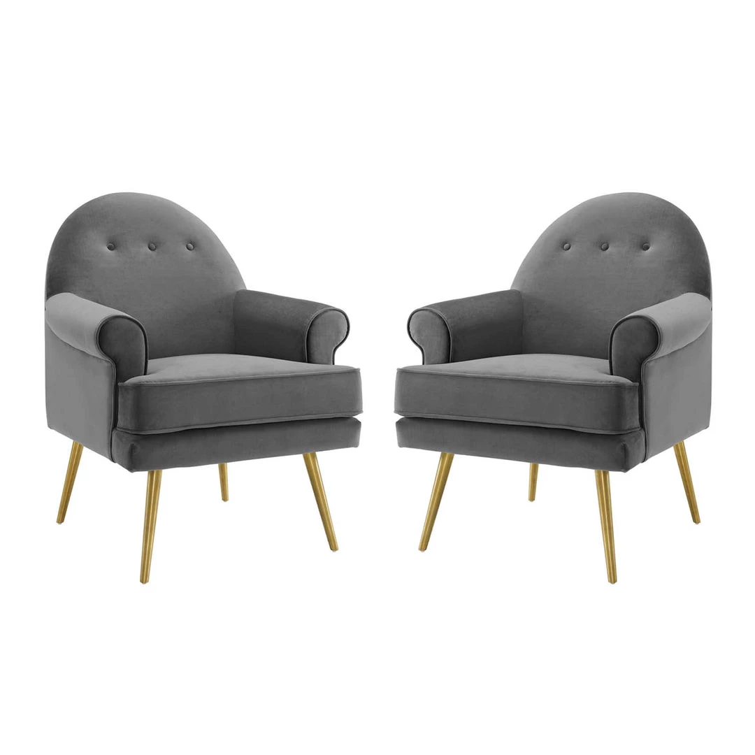 Vintage glam abounds with the Revive Accent Armchair. Revive’s rounded tufted button back slopes into rolled arms for an organic mid-century modern design supported by four splayed gold stainless steel dowel legs. Covered in soft, stain-resistant performance velvet upholstery with generous dense foam padding, Revive is a luxurious accent chair for the living room, entryway, lounge room, or home office.