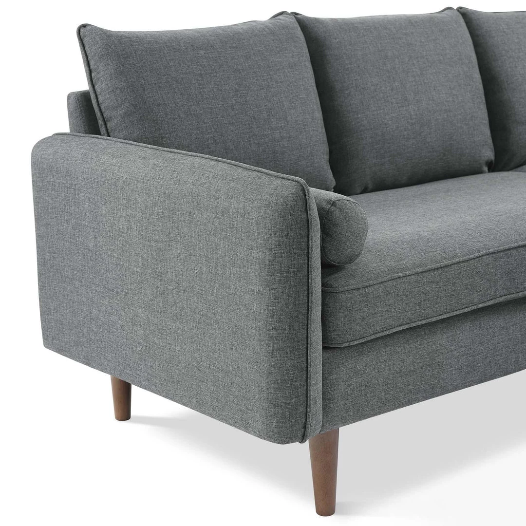 Give new vitality to your living space with the Revive Upholstered Fabric Right or Left Sectional Sofa Sectional Sofa. With a comfortable yet tailored profile and two bolster pillows, Revive Living Room Couch beckons guests to sit and stay a while. Dense foam padding and a pocket coil spring system provide a luxurious seating experience. Soft polyester fabric upholstery grants this three-seater sectional sofa with a right or left facing chaise an approachable appeal that’s echoed by its calming color, clean lines, and splayed and tapered wood legs with non-marking foot caps. The Revive Right-Facing Sofa has a built in ottoman that allows for a variety of comfortable lounging combinations and accommodates a multiple decor styles in your living room, lounge room, or other seating area. Weight Capacity: 900 lbs.