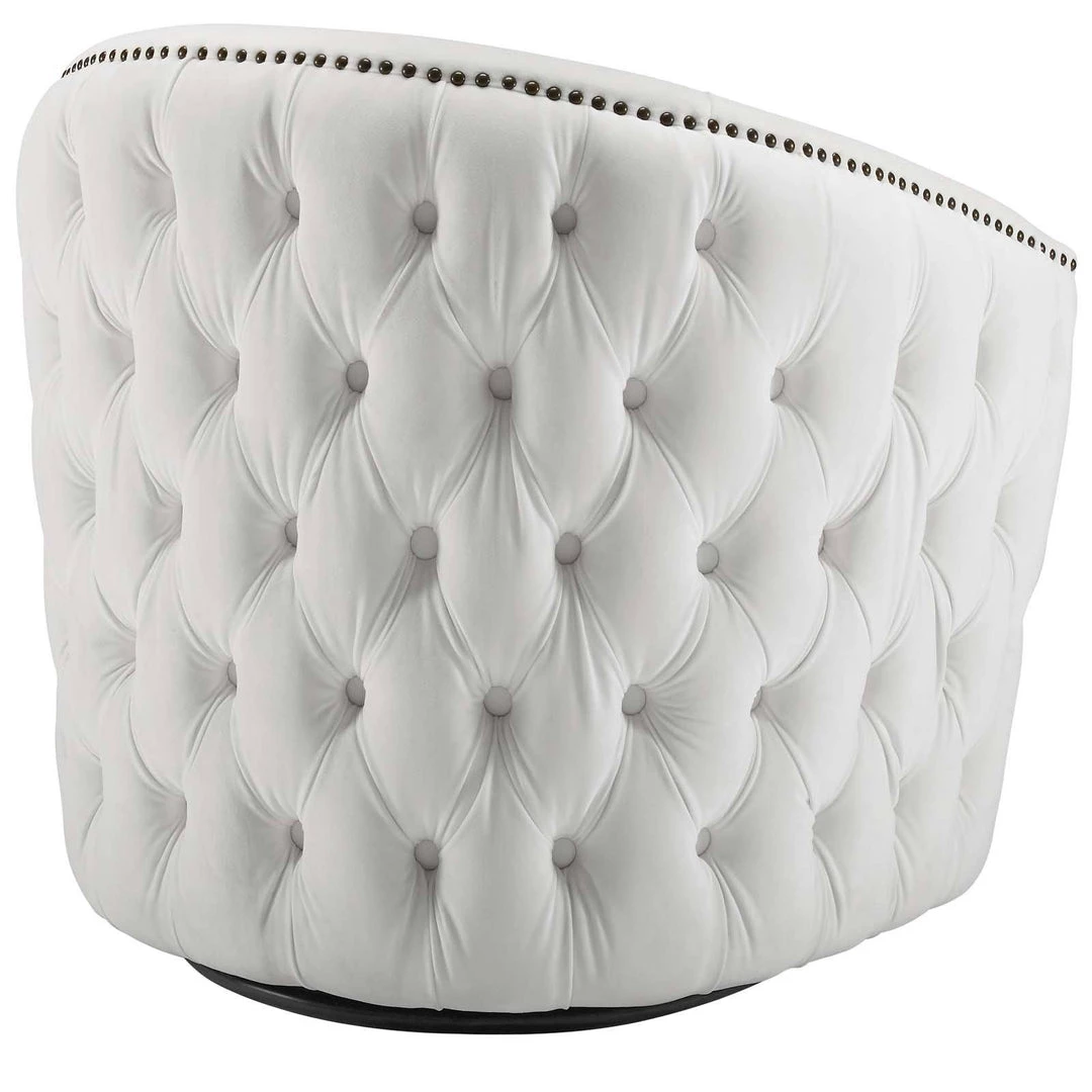Complete your room with the Rogue Performance Velvet Swivel Armchair. Secured on a 360-degree swivel base, Rogue adapts with stylish ease to any living room, lounge area, entryway or seating nook. An organic barrel back design blends into one seamless silhouette for a comfortable, supportive accent chair. Stain-resistant performance velvet upholstery provides tactile luxury, and the durable upholstery covers dense foam padding for premium seating comfort. Rogue is a vintage classic that will introduce plush comfort into your living room decor.