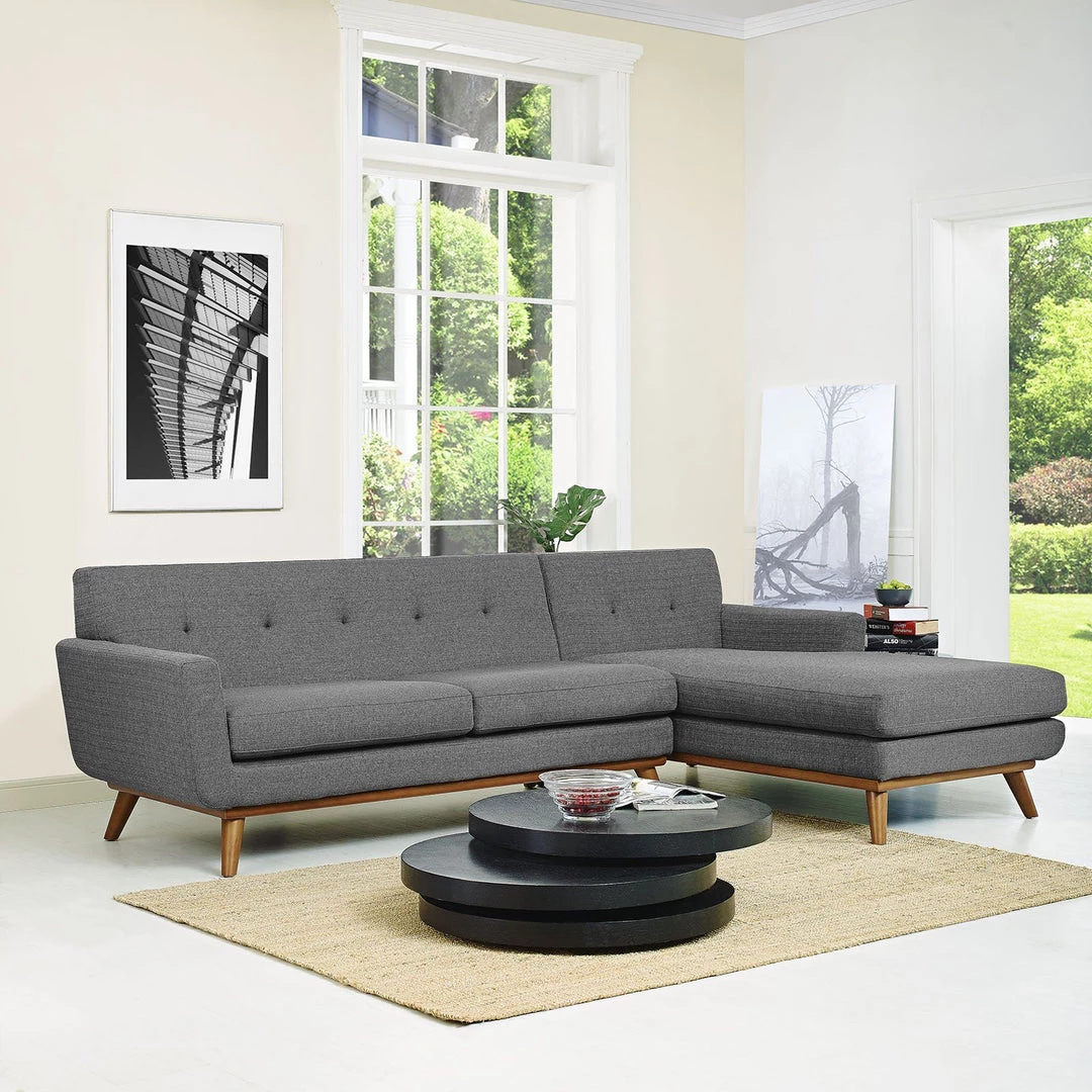Gently sloping curves and large dual cushions create a favorite lounging spot. Whether plopping down after a long day at work, settling in with coffee and brunch, or entering a spirited discussion with friends, the Engage Living Room Set is a welcome presence in your home. Buttons create eye-catching appeal, adding depth that brings your sitting décor to center stage. Four rubberwood legs and frame supply a solid base to the comfortable upholstered material.