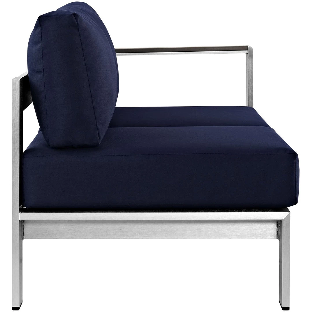 Shore Right-Arm Corner Sectional Outdoor Patio Aluminum Loveseat Silver Navy