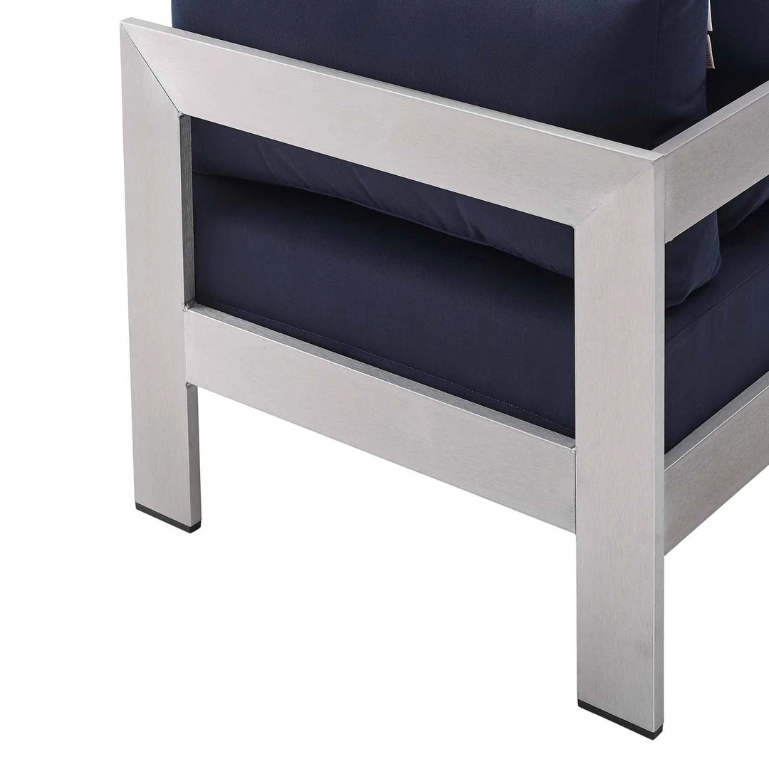 Shore Sunbrella® Fabric Aluminum Outdoor Patio Corner Sofa Silver Navy
