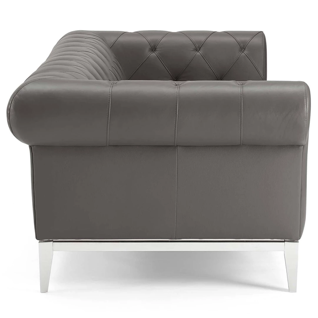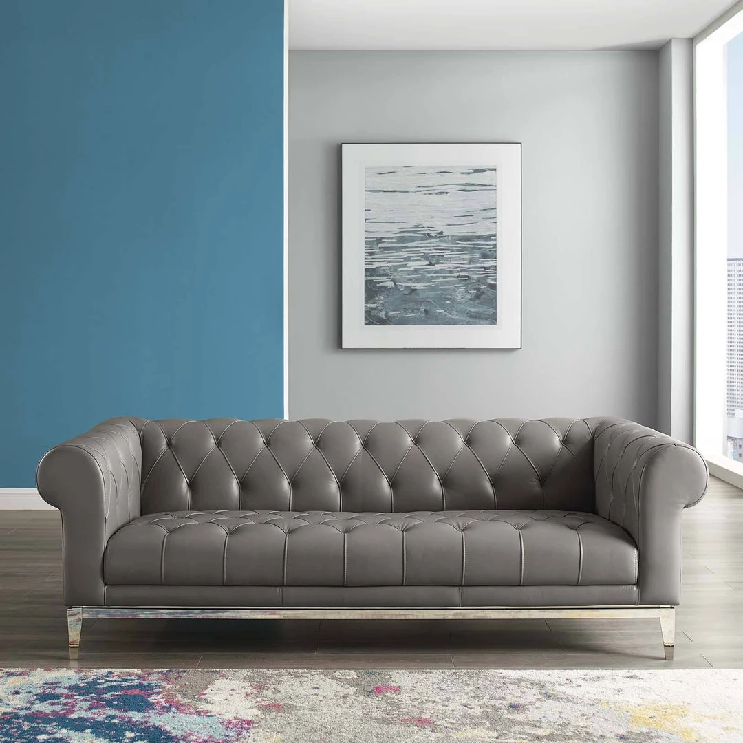 Idyll Tufted Button Upholstered Leather Chesterfield Sofa Gray