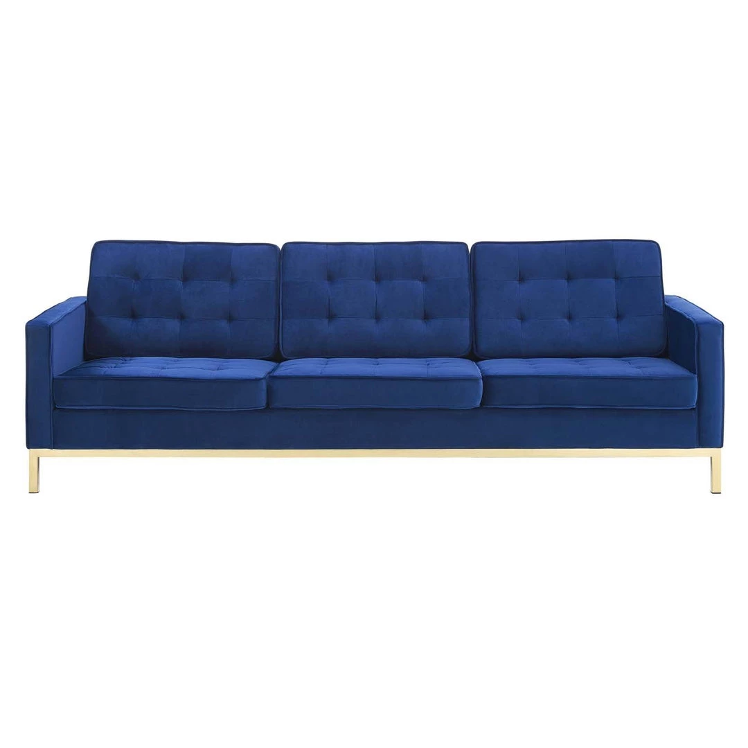 Loft Gold Stainless Steel Leg Performance Velvet Sofa Gold Navy