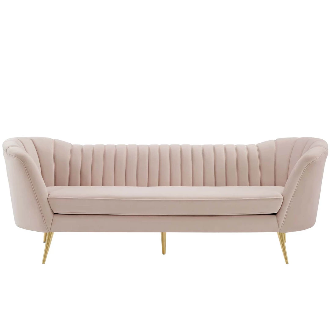Opportunity Vertical Channel Tufted Curved Performance Velvet Sofa Pink