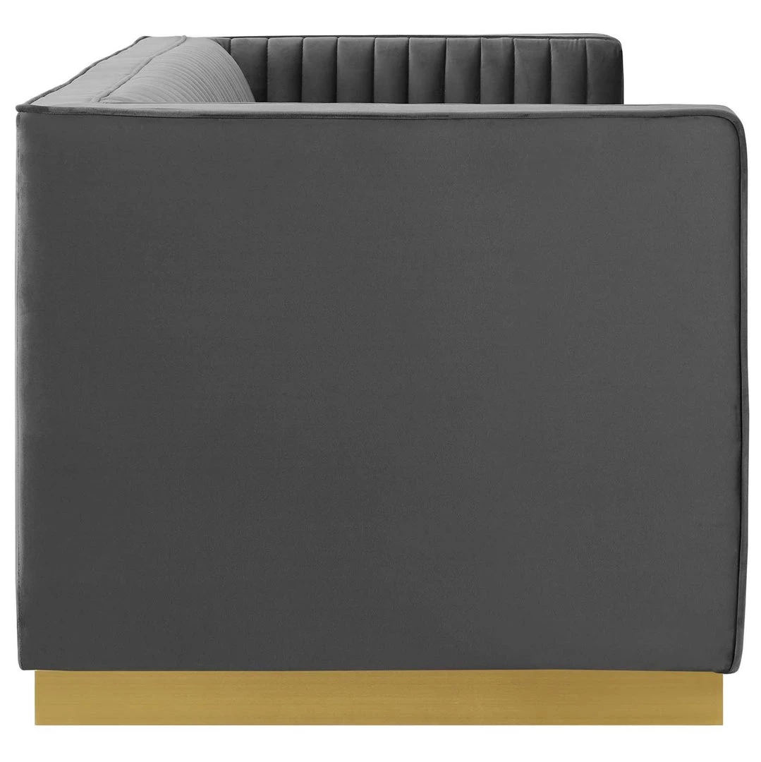 Sanguine Vertical Channel Tufted Performance Velvet Sofa Gray