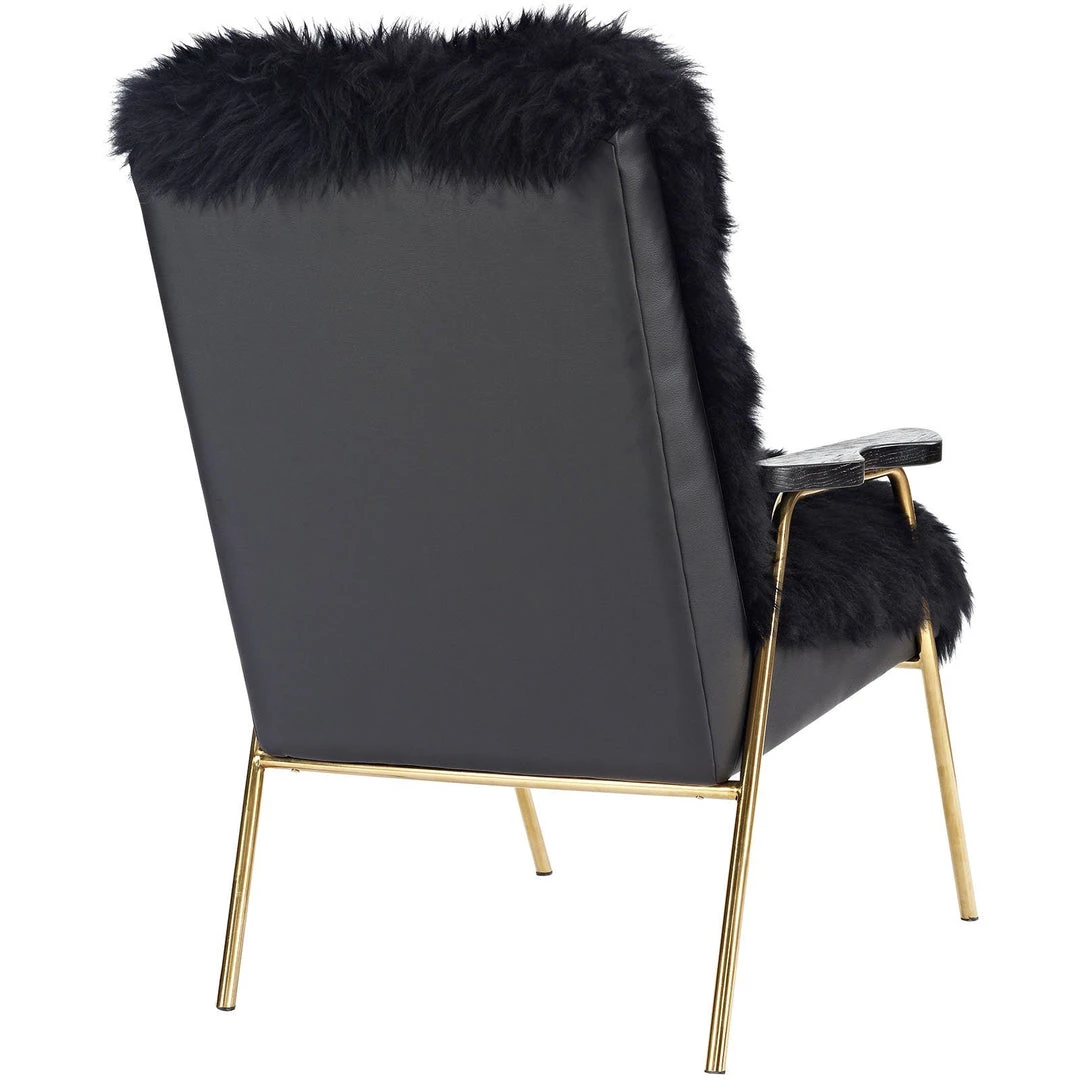 Transform your living room décor with the Sprint Armchair. Fashioned with luxurious sheepskin, Sprint features dense foam padding finely upholstered in vinyl, gold accented stainless steel legs, non-marking plastic foot glides, and richly detailed solid oak wood armrests. Sprint instantly updates the modern home or apartment with an exquisitely chic and glamorous look.
