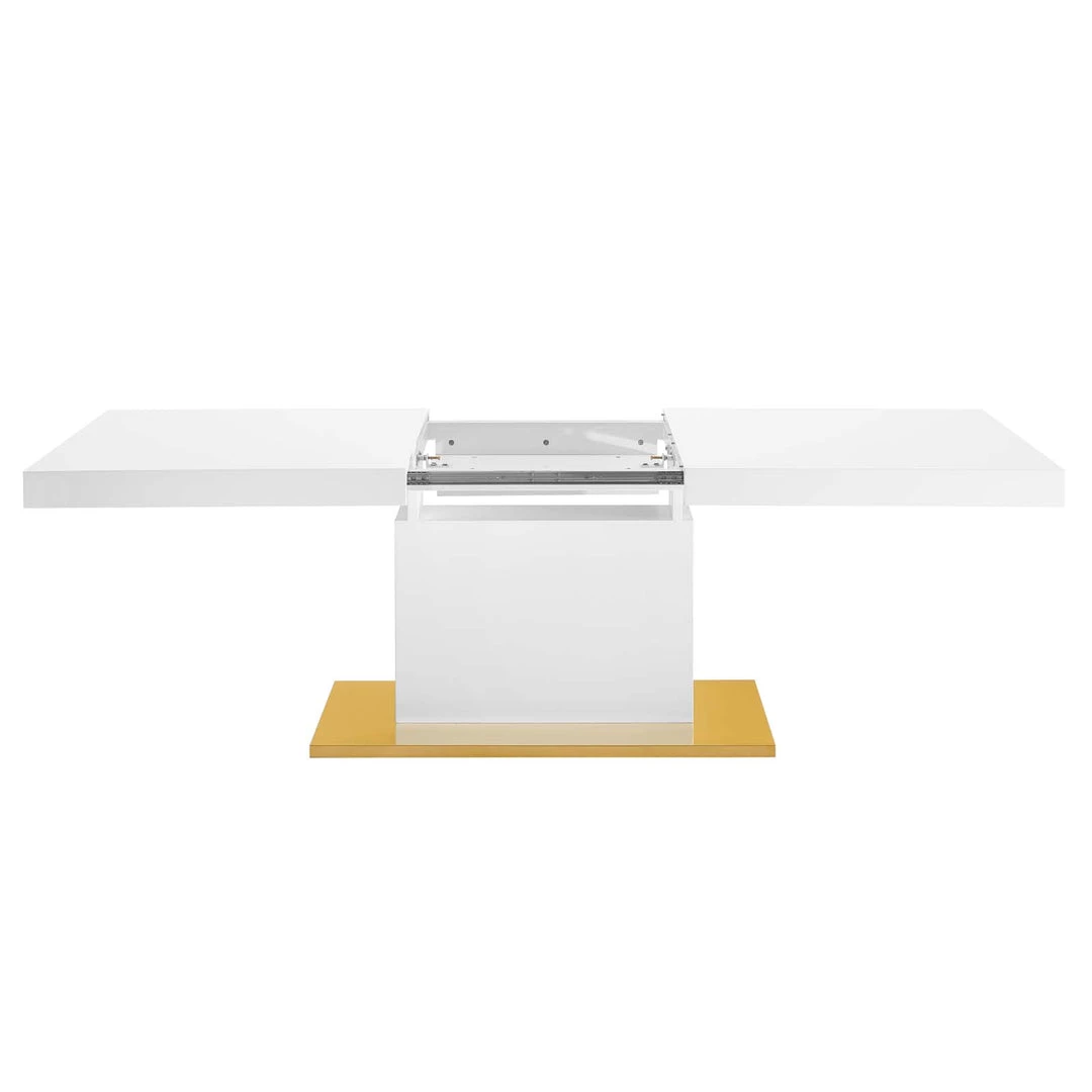 - KD structure1,P2/EPA MDF with BLK or WHI color(High Gloss Lacquer ). 2, P2/EPA MDF with veneer, base:# 201 stainless steel plated with gold, bottom with black plastic adjusting pad, middle panel can be folded at the bottom, table length extendable