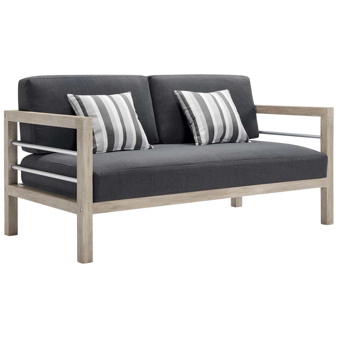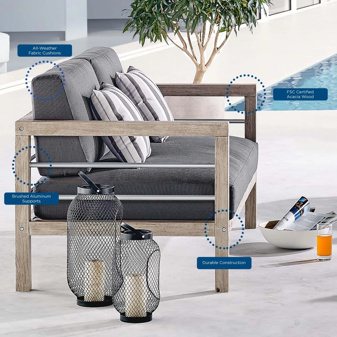 Wiscasset Outdoor Patio Acacia Wood Loveseat Light Gray